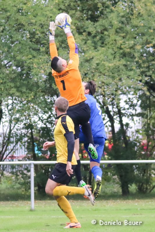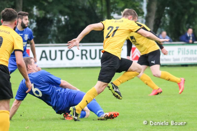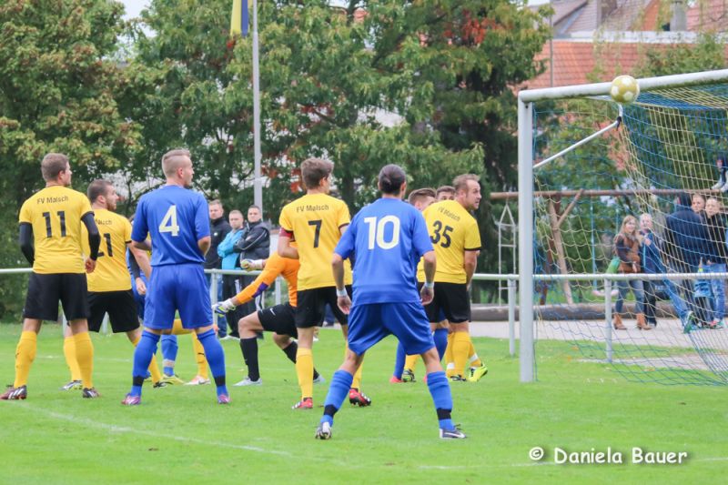Dabei fing die Partie sehr verheißungsvoll an. Der TV fand frühzeitig gut ins Spiel und ging bereits nach 5 Minuten durch einen Kopfballtreffer von U. Beck mit 1:0 in Führung. Nur wenig später hätte D. Breger aus aussichtsreicher Position nachlegen können, doch verfehlte er das Malscher Gehäuse knapp. Unverständlich, dass der der TV dann jedoch mit zunehmender Spieldauer die Partie mehr und mehr aus den Händen gab und dem Gegner die Initiativer überließ. Dies wusste der Gast zu nutzen und drehte nach einer halben Stunde die Begegnung innerhalb von wenigen Minuten durch D. Rohde und Karollus zum 1:2. Erst danach taten die Blau-Gelben wieder mehr für ihr Spiel und hatten durch M. Junker gleich zweimal die große Gelegenheit zum Ausgleich.