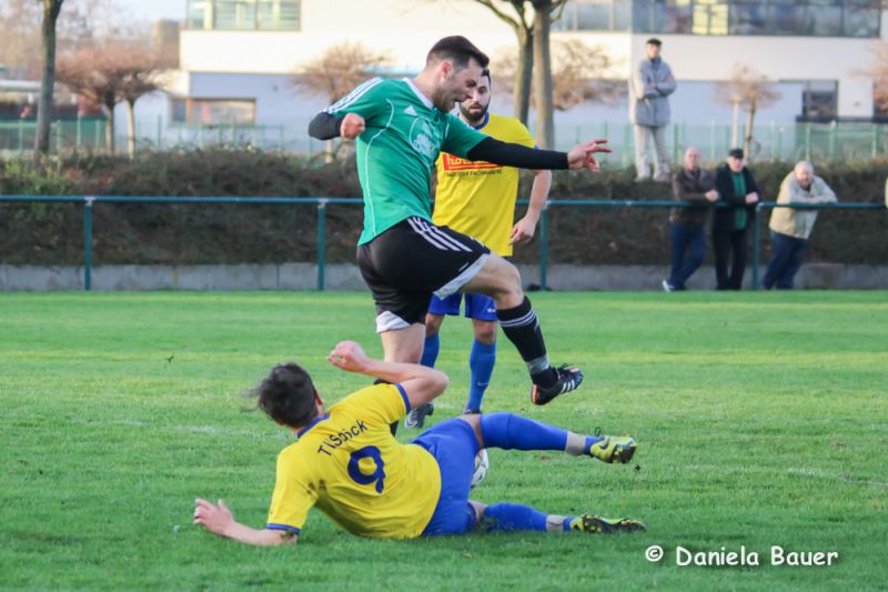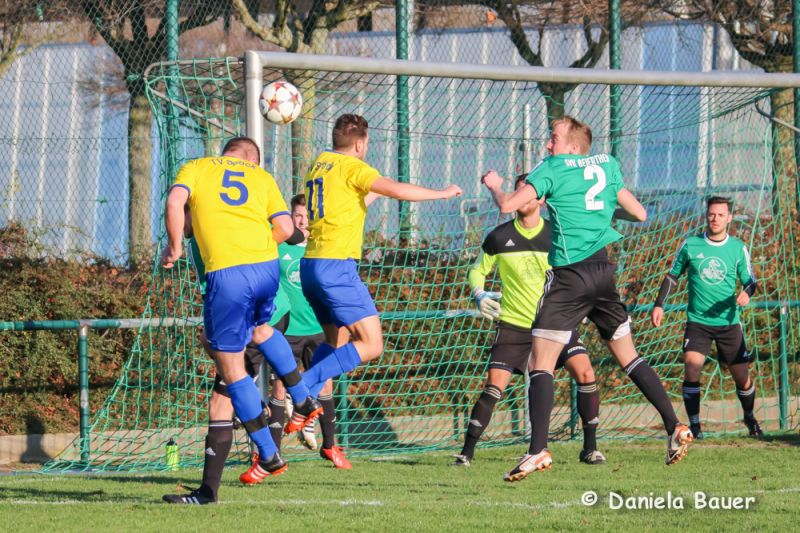 Nach dem Rücktritt von Trainer Andreas Bückert am vergangenen Donnerstag übernahm Co-Trainer Sinan Capraz die Betreuung der Mannschaft, die in der Anfangsphase sofort das Spiel an sich riss, die Möglichkeiten aber nicht zur Führung nutzen konnte. Umso überraschender, dass die Gastgeber Mitte der ersten Hälfte mit ihren ersten ernsthaften Angriffsversuchen ein Foulelfmeter zugesprochen bekamen, diesen zum 1:0 verwerteten und nur wenig später durch Lindenberg gar auf 2:0 erhöhten. Der TV zeigte sich jedoch nicht geschockt und konnte innerhalb von nur 5 Minuten die Partie wieder ausgleichen, als zunächst Uwe Beck einen Freistoß zum 2:1 nutzte und wenig später D. Breger den Ausgleich besorgte.
