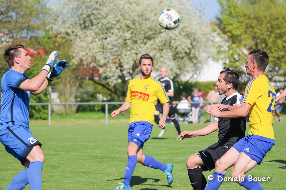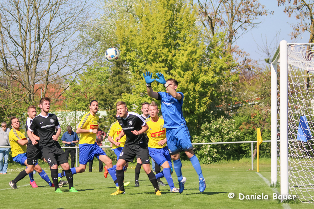 Dabei begannen die Blau-Gelben die Partie sehr engagiert und hatten in der Anfangsphase auch deutliche Vorteile. Leider versäumte man es in dieser Phase die wenigen guten Möglichkeiten, die sich in erster Linie nach Standards ergaben, zu einem Treffer zu nutzen. Mit zunehmender Spieldauer fanden dann auch die Gäste immer besser in die Partie, die ganz großen Chancen blieben jedoch aus, so dass torlos die Seiten gewechselt wurden.