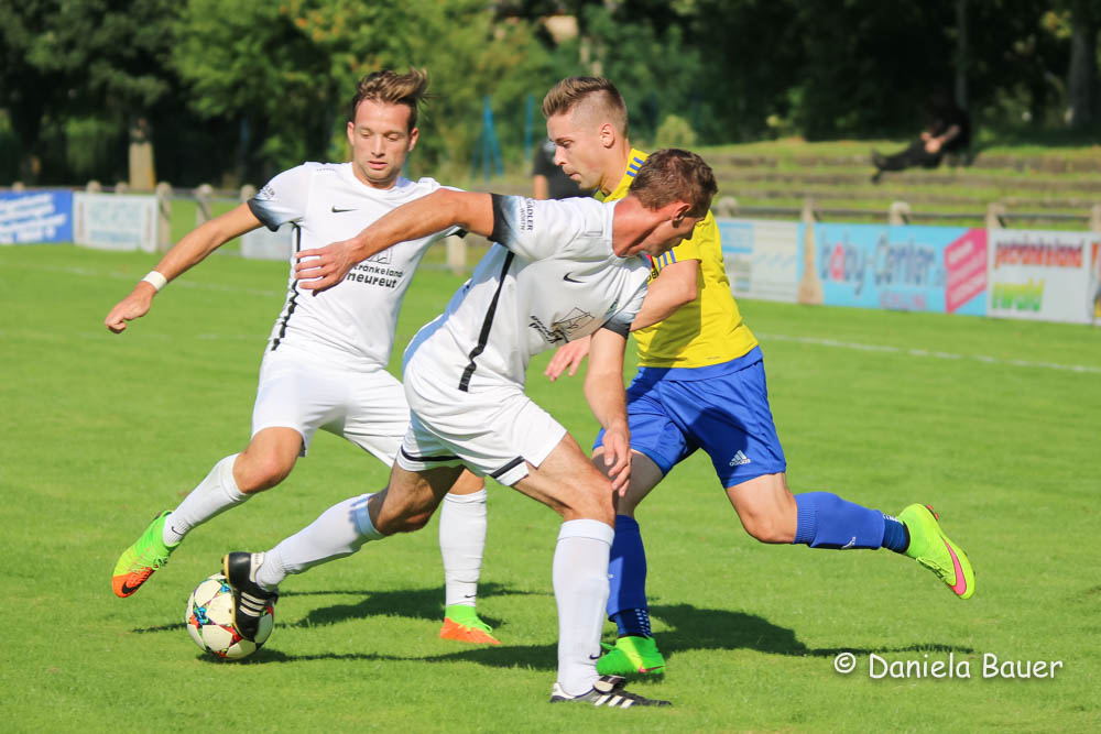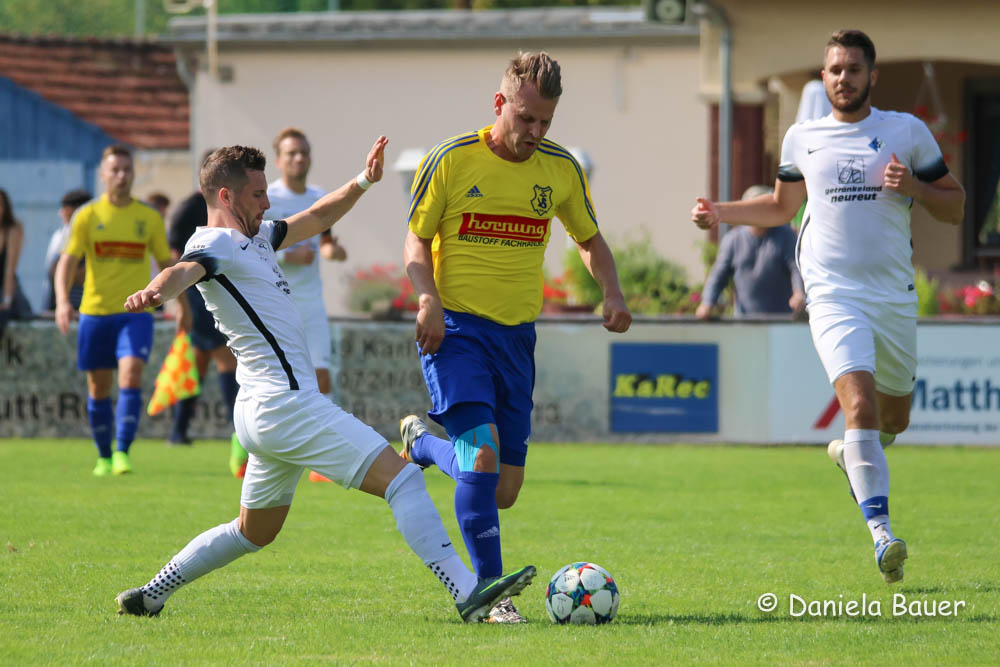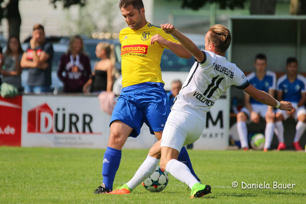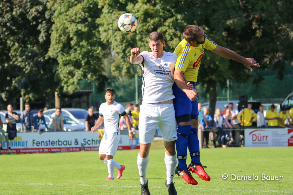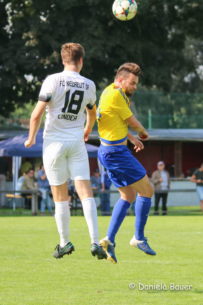 Der Führungstreffer in der 6. Minute durch Beer resultierte jedoch aus einem selbstverschuldeten leichtfertigen Ballverlust, nach dem sich die Einheimischen nicht länger bitten ließen. Der TV fand in den ersten 45 Minuten nie zu einem gewohnten Spielaufbau und hatte vor dem Wechsel nicht eine gefährliche Torraumszene vorzuweisen. Ob es an den kurzfristigen personellen Änderungen lag, nachdem beim Warmmachen mit Norman Durand und Dominik Breger gleich zwei Akteure noch kurzfristig ausfielen, oder an dem starken Auftritt des FC Neureut sei dahingestellt, jedenfalls entwickelte sich die Partie zu einer recht einseitigen Angelegenheit. Das 2:0 durch Eisermann in der 26. Minute war dabei nur die logische Konsequenz aus den zahlreichen Möglichkeiten.