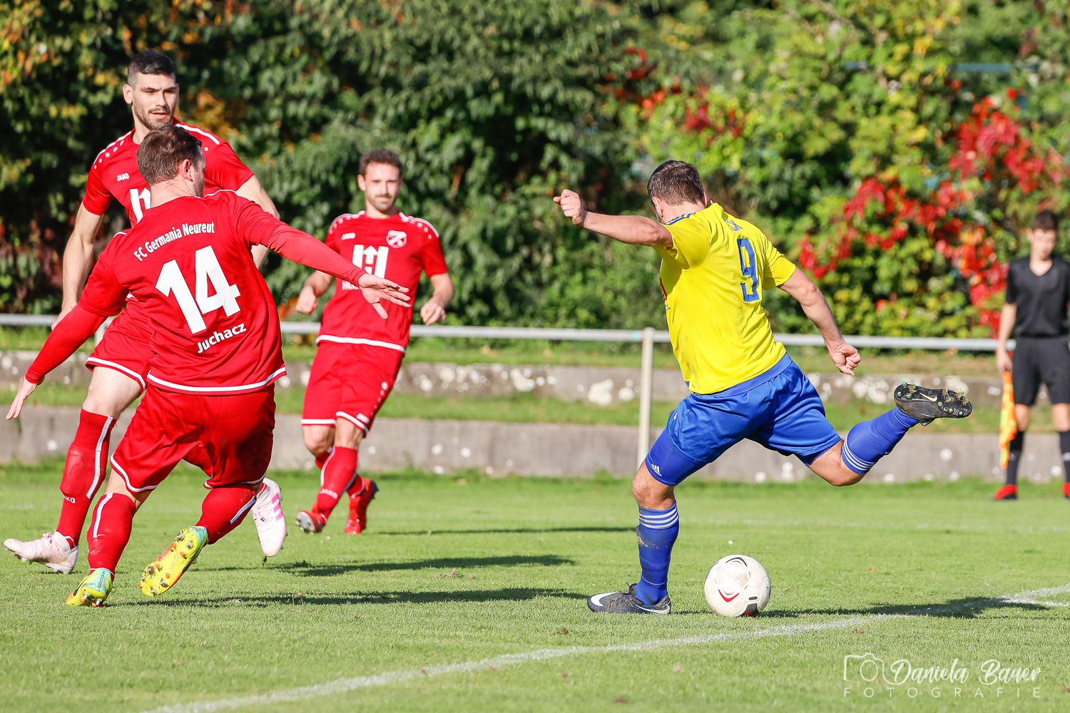 So auch am vergangenen Sonntag, wo der TV konzentriert und dominant begann und mit T. Reiter auch die erste gute Gelegenheit hatte. Die größte Chance zur Führung für den TV hatte dann U. Beck, der aus zentraler Position frei auf den gegnerischen Schlussmann zulaufen konnte, am Ende aber den Ball knapp neben das Gehäuse platzierte. Auch D. Breger hatte in der Folge noch die Führung auf dem Fuß, doch wieder einmal wurden zu viele Gelegenheiten ungenutzt gelassen. Dies bestraften die Gastgeber mit einem Doppelschlag kurz vor der Pause, als man auf Spöcker Seite einmal nicht konsequent verteidigen konnte und drei Minuten später nach einem unglücklichen Wegrutschen beim herauslaufenden TV Schlussmann Morbitzer der Neureuter Butz dann keine Probleme hatte, den Ball ins leere Tor zu befördern. Damit war der Spielverlauf der ersten Hälfte komplett auf den Kopf gestellt.