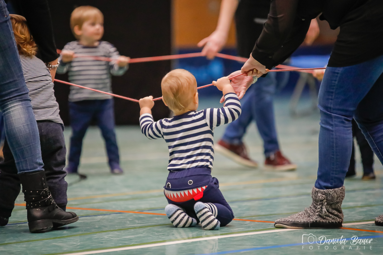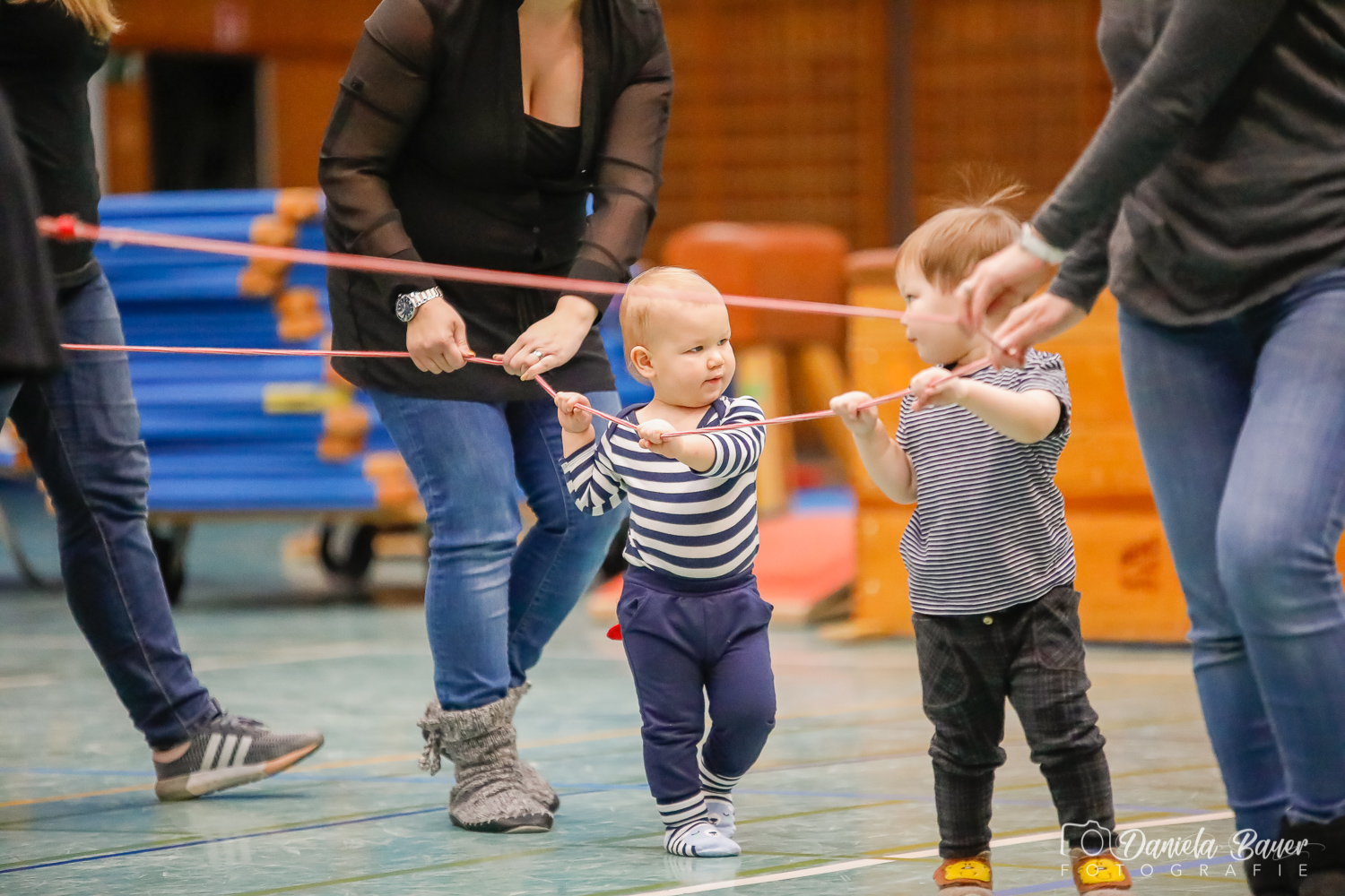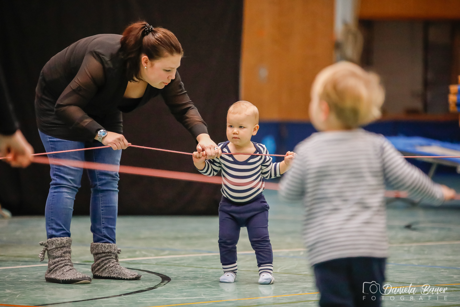 Sobald das Kind selber laufen kann, hat es in dieser Gruppe die Möglichkeit, gemeinsam mit Mama, Papa, Oma oder Opa viele abwechslungsreiche Bewegungslandschaften zu erkunden. Die Kinder werden spielerisch an Turngeräte herangeführt und können so erste Erfahrungen sammeln. Ein weiterer Schwerpunkt liegt darin, die Kinder ausprobieren zu lassen. Sie sollen so ihre eigenen Grenzen kennenlernen. Gezielten Wert legen wir auf die Aneignung der Grundfertigkeiten wie Hängen, Stützen, Rollen, Balancieren, Hüpfen und Werfen.