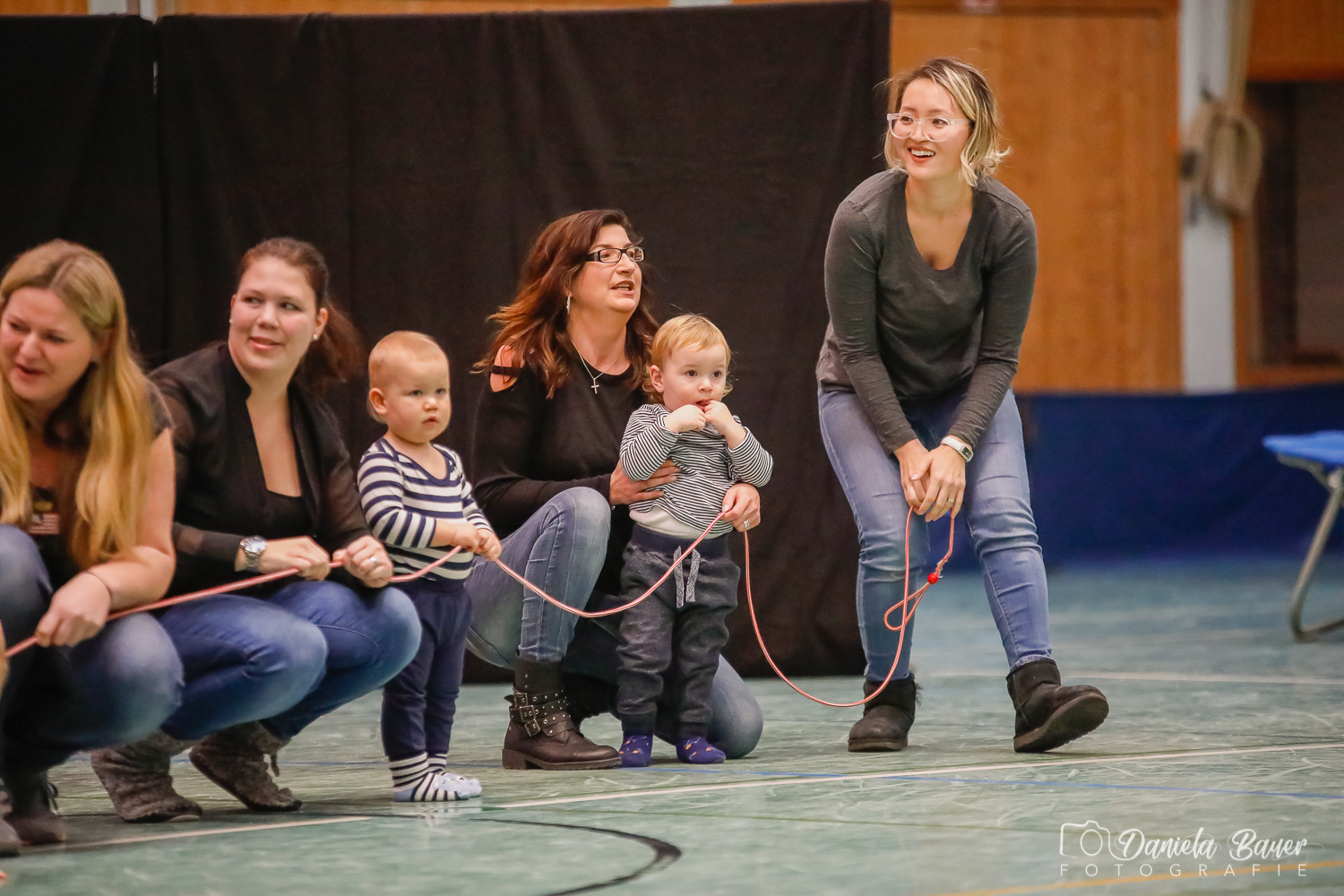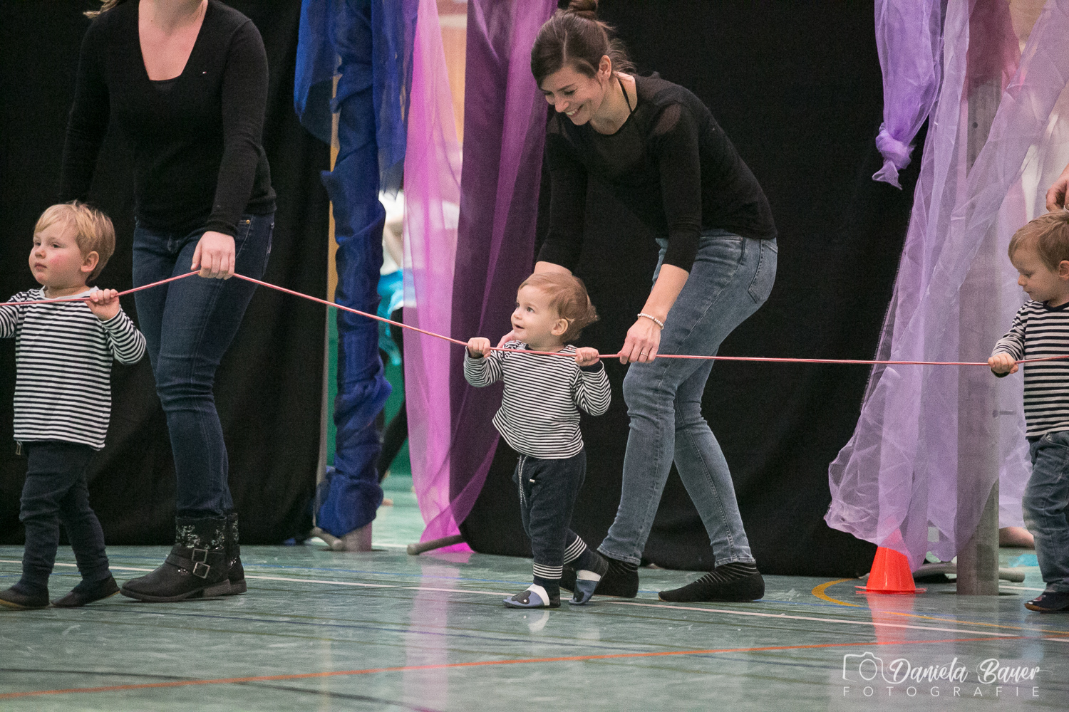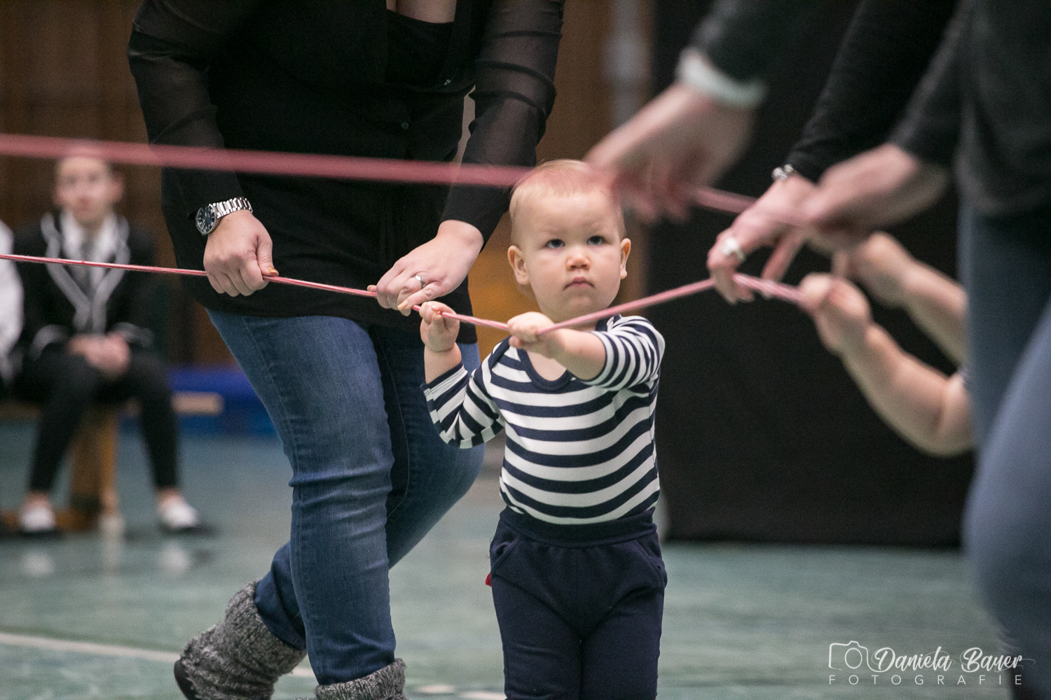 Sobald das Kind selber laufen kann, hat es in dieser Gruppe die Möglichkeit, gemeinsam mit Mama, Papa, Oma oder Opa viele abwechslungsreiche Bewegungslandschaften zu erkunden. Die Kinder werden spielerisch an Turngeräte herangeführt und können so erste Erfahrungen sammeln. Ein weiterer Schwerpunkt liegt darin, die Kinder ausprobieren zu lassen. Sie sollen so ihre eigenen Grenzen kennenlernen. Gezielten Wert legen wir auf die Aneignung der Grundfertigkeiten wie Hängen, Stützen, Rollen, Balancieren, Hüpfen und Werfen.