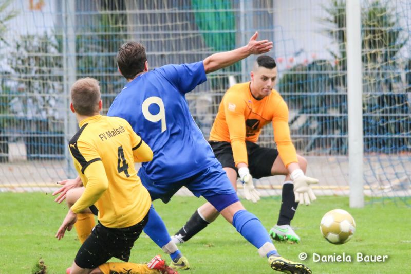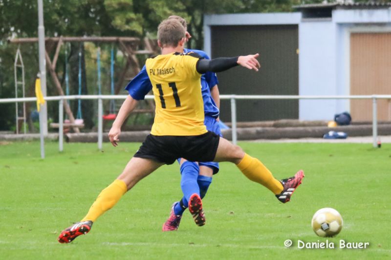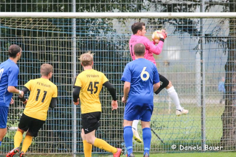 Dabei fing die Partie sehr verheißungsvoll an. Der TV fand frühzeitig gut ins Spiel und ging bereits nach 5 Minuten durch einen Kopfballtreffer von U. Beck mit 1:0 in Führung. Nur wenig später hätte D. Breger aus aussichtsreicher Position nachlegen können, doch verfehlte er das Malscher Gehäuse knapp. Unverständlich, dass der der TV dann jedoch mit zunehmender Spieldauer die Partie mehr und mehr aus den Händen gab und dem Gegner die Initiativer überließ. Dies wusste der Gast zu nutzen und drehte nach einer halben Stunde die Begegnung innerhalb von wenigen Minuten durch D. Rohde und Karollus zum 1:2. Erst danach taten die Blau-Gelben wieder mehr für ihr Spiel und hatten durch M. Junker gleich zweimal die große Gelegenheit zum Ausgleich.